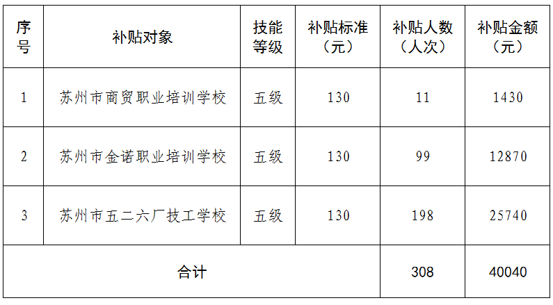 2025年苏州市本级职业技能评价补贴公示(第四期)