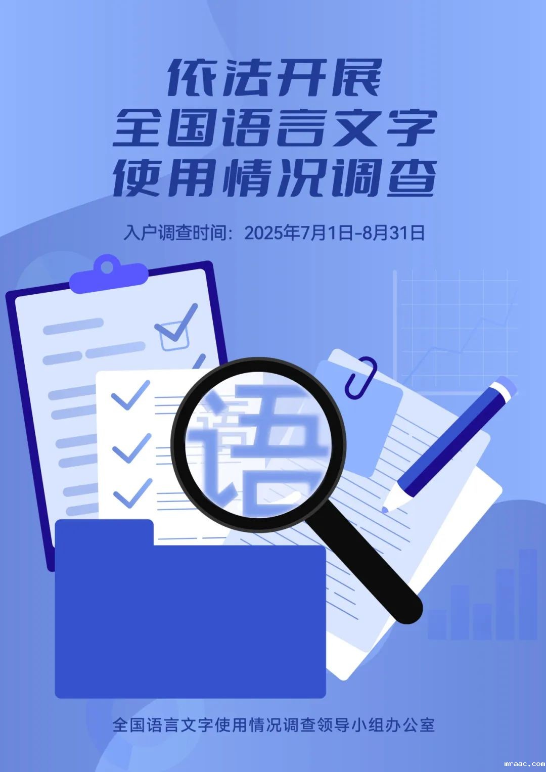 经国家统计局批准,教育部、国家语言文字工作委员会决定组织开展2025年全国语言文字使用情况调查,调查工作于2025年7-8月开展,由调查员进行入户问卷。