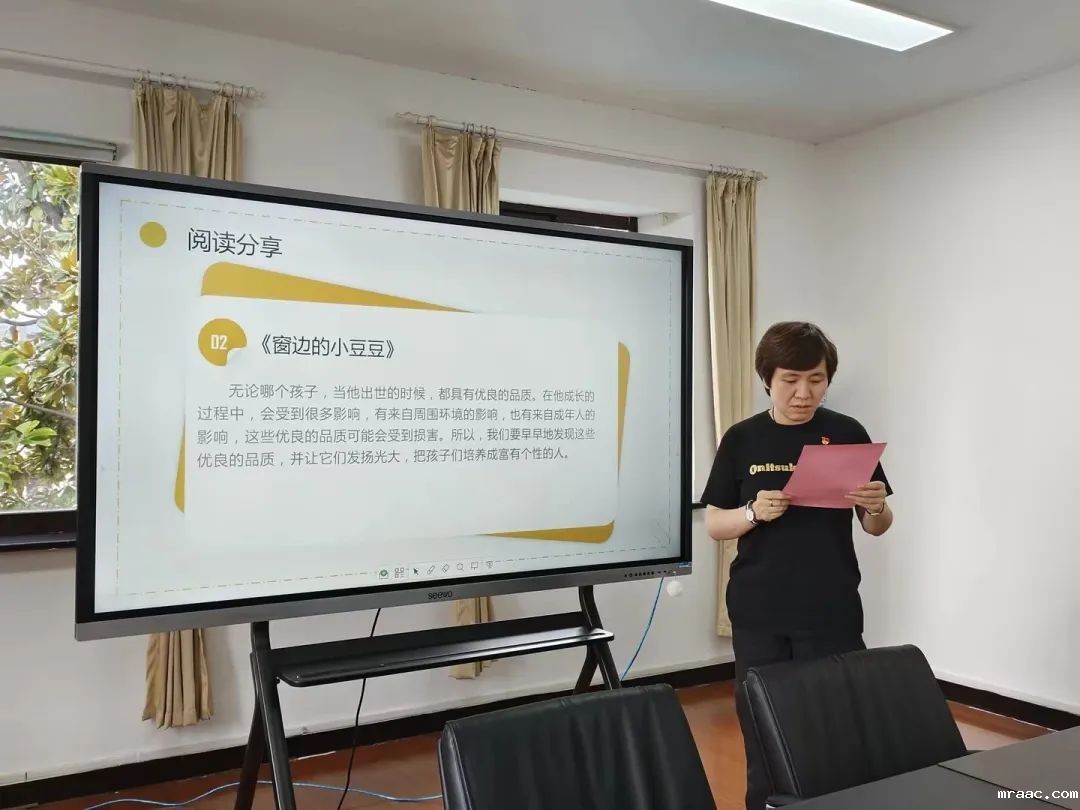 尤洁老师分享了黑柳彻子《窗边的小豆豆》一书。书中并没有什么华丽的辞藻和大道理,作者只是用生活中一个个真实的小故事,带我们走进孩子们的内心世界。人之初,性本善。每个孩子的心中都埋藏着一颗善良的种子,我们要做的就是让这颗种子萌芽,茁壮成长。期待我们都能够像小林先生和小豆豆妈妈一样有耐心,做小朋友喜欢的好大人。