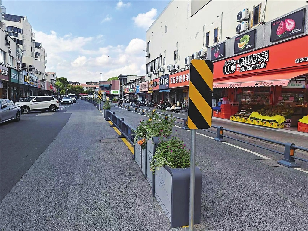 针对老旧街区城市服务能力较弱、民生诉求热点较为集中这一情况,狮山横塘街道对沿街商家和周边居民开展民意征集、实地调研座谈,收集到关于街区品质提升的意见建议40余条,并将其吸收融合在后续的改造设计方案中。拆除、拓宽,最大幅度还路于民。项目根据方案设计对街区路面重新划线,让通行更顺畅,市政部门则通过挖掘城市潜能,对道路沿线300余米施划非机动车位,进一步释放停车空间。