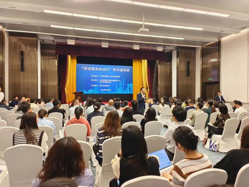 为深入分析当前国际经贸形势,助力苏州外经贸企业巩固和拓展海外市场,5月9日,“贸促服务助企行”苏州宣讲会成功举办。200余家外贸企业认真聆听了全球市场形势、境外展会推介等。