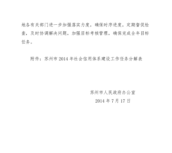 市政府办公室关于分解下达苏州市2014年社会信用体系建设工作任务的通知