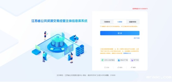 网址:江苏省公共资源交易经营主体管理平台 http://49.77.204.17:7082/jsztk/#/login?redirect=%2F