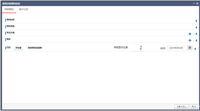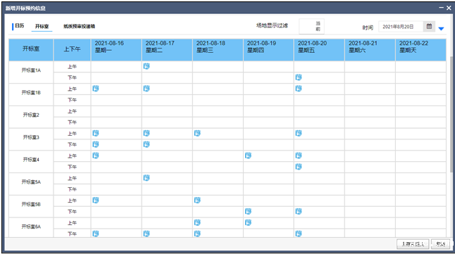 日历:可查看当前所有开标室/纸质预审投递箱的预约情况;