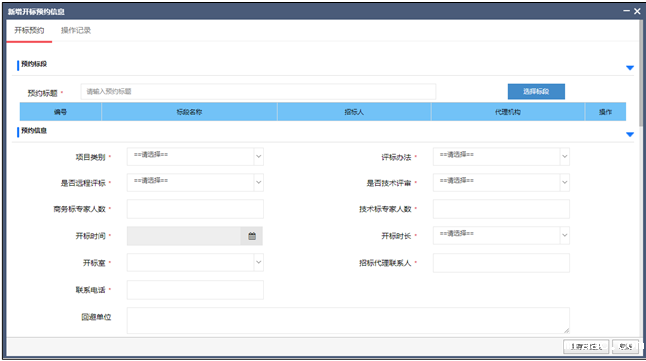 新增开标预约信息:输入/选择相应信息后点击【保存】即可;