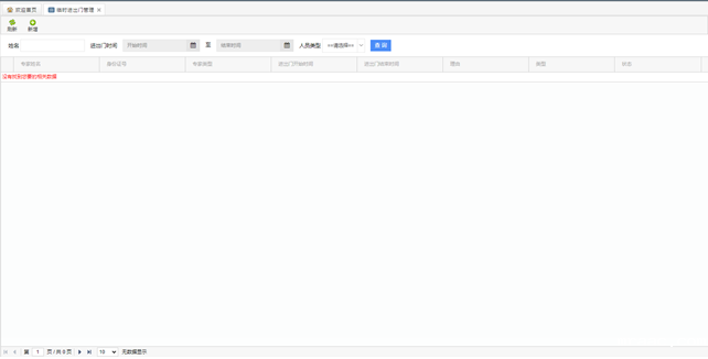 代理企业人员登录管理系统点击【评标区管理】—【临时进出门处理】打开临时进出门处理页面,该页面主要用于专家临时进出门;