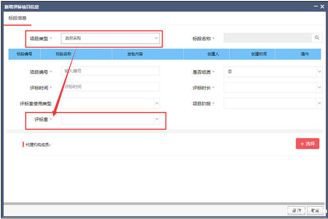 其中新增政府采购项目时还需注意:需要预选评标室,且在安排项目评标时默认只有预选的评标室可以安排评标机位;