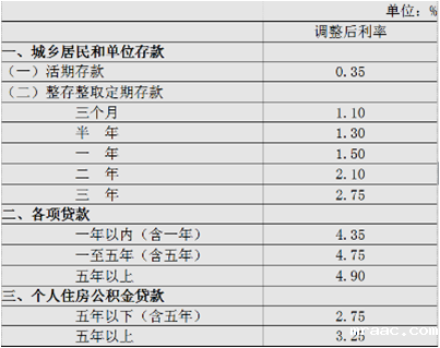 中国人民银行决定,自2015年10月24日起,下调金融机构人民币贷款和存款基准利率,以进一步降低社会融资成本。其中,金融机构一年期贷款基准利率下调0.25个百分点至4.35%;一年期存款基准利率下调0.25个百分点至1.5%;其他各档次贷款及存款基准利率、人民银行对金融机构贷款利率相应调整;个人住房公积金贷款利率保持不变。同时,对商业银行和农村合作金融机构等不再设置存款利率浮动上限,并抓紧完善利率的市场化形成和调控机制,加强央行对利率体系的调控和监督指导,提高货币政策传导效率。