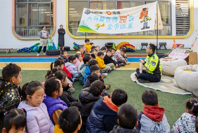 第十四个“全国交通安全日”到来之际,苏州工业园区翡翠幼儿园里,一场别开生面的户外教学活动正在暖阳下、欢声笑语中展开。孩子们围坐在“大马警官”身边,听他用温和的声音讲述“生肖小镇”里的交通安全故事。这一幕,不仅是2025年度“大马警官游‘园’会”主题系列活动的一帧画面,更是近年来苏州交警在低龄幼儿交通安全教育领域持续探索、系统推进的生动缩影。从2023年公安部道路交通安全研究中心在苏州工业园区启动“低龄幼儿交通安全绘本教育”试点,到如今“大马警官”形象深入童心、走入家庭、影响社会,这一路走来,不仅是一场交通安全教育方式的创新实践,更是一次“校家警社”协同育人的深刻变革。