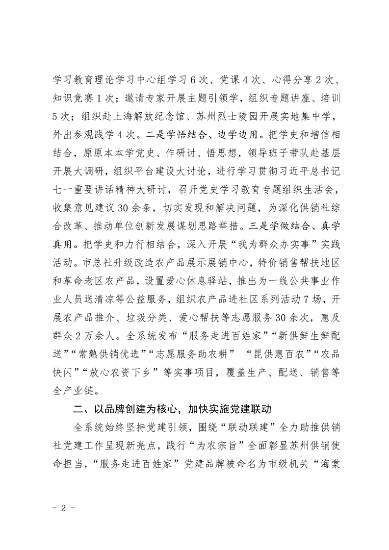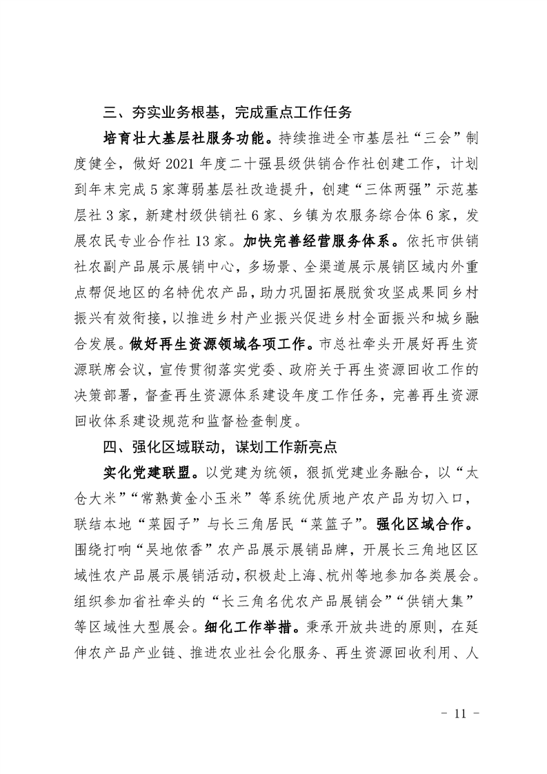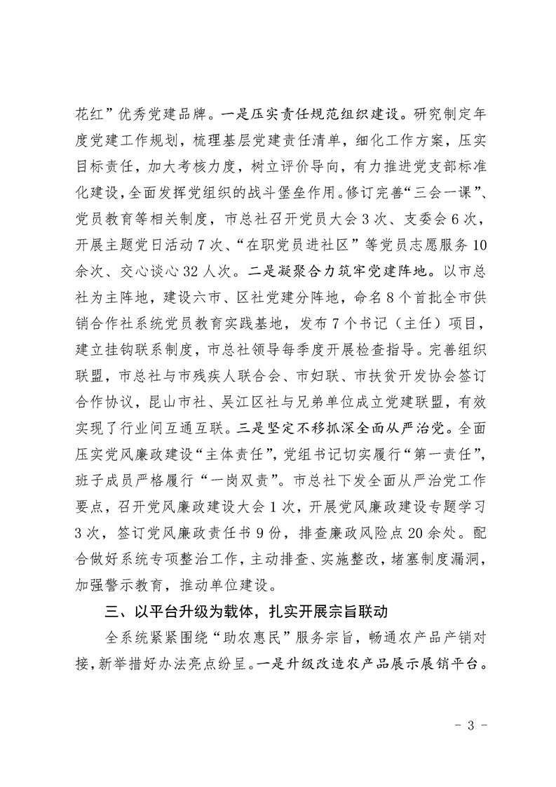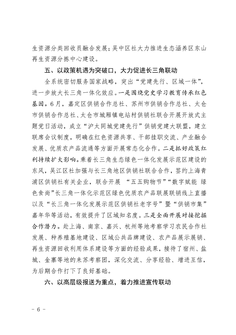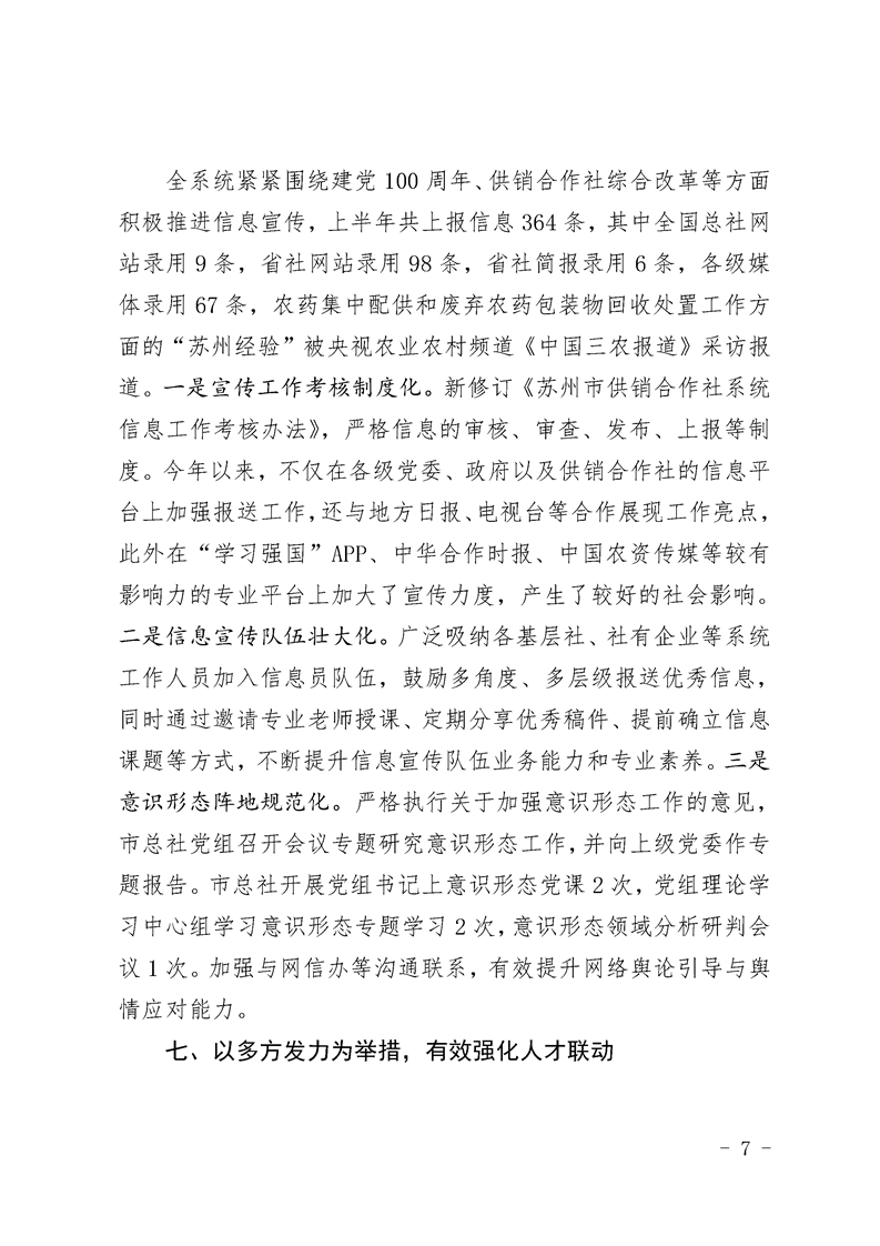 苏州市供销合作社系统2021年上半年工作总结和下半年工作意见
