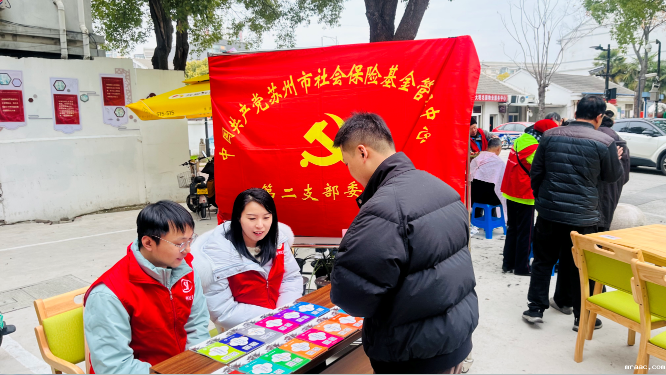 活动现场,为了让社区居民更好地了解社保政策,党员们将一份份社保宣传手册发到居民手上,详细向他们解读社会保险政策动向,用心用情解答他们急难愁盼的问题。