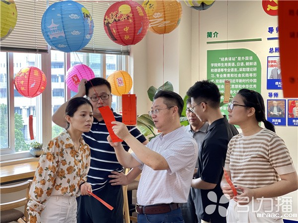 在中秋、国庆双节来临之际,常熟理工学院外国语学院在“经典译站”开展“双语猜红色灯谜学百年党史”主题活动。在彩灯的装饰下,站内分外喜庆,吸引了众多师生的热情参与。