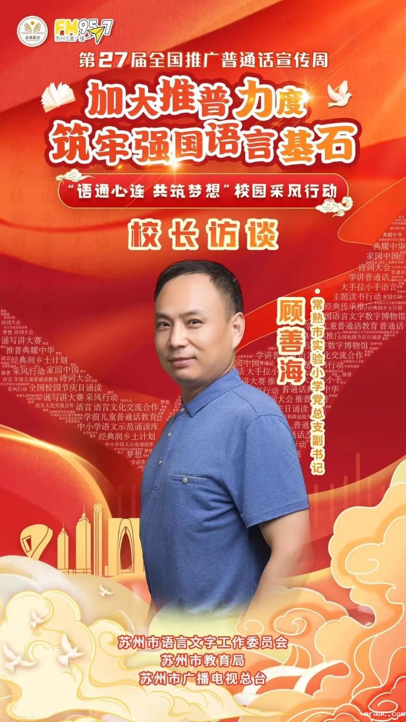 2024年9月我们迎来了全国第二十七届推广普通话宣传周。今年宣传周的主题是“加大推普力度,筑牢强国语言基石”。为此,苏州市教育局、苏州市语委办、苏州市广电总台联合举办“语通心连,共筑梦想”校园采风行动暨校长访谈特别节目。