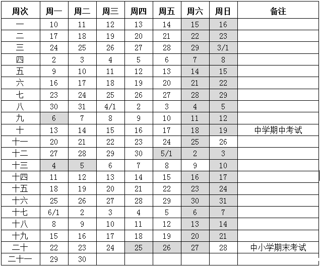 3.各校可根据实际工作需要对期末考试时间作适当调整。
