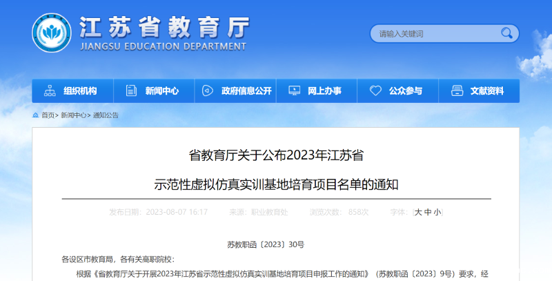 日前,虚拟仿真实训基地培育项目,名单公布。经学校申报、专家评审、结果公示、省教育厅专题办公会审议,确定2023年江苏省职业教育示范性,虚拟仿真实训基地培育项目50个,其中,苏州9个项目入选: