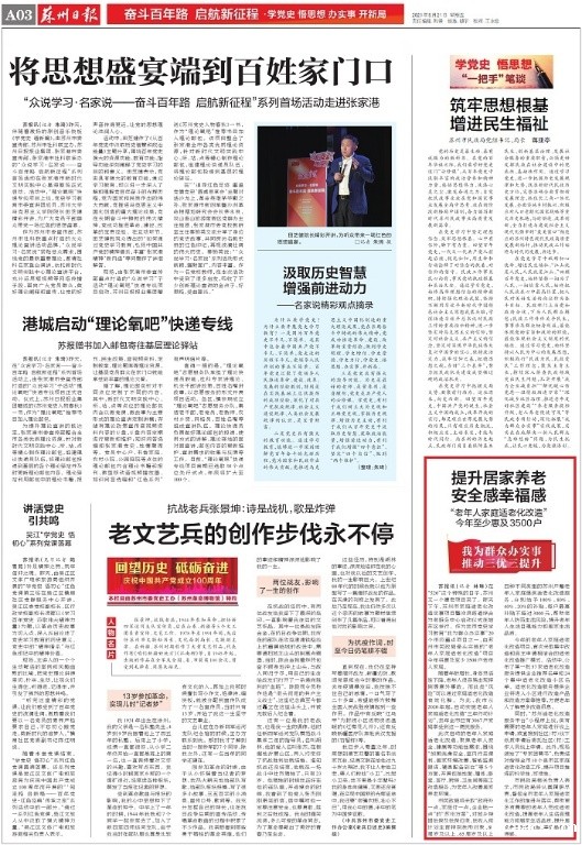 在“520”这个特殊的日子,苏州又一个惠老项目来了。昨天下午,苏州市家庭适老化改造实事项目暨沧浪街道综合为老服务中心启动仪式在姑苏区举行。作为我市党史学习教育“我为群众办实事”20个市级重点项目之一,由苏州市民政局牵头实施的“老年人家庭适老化改造”项目今年将惠及至少3500户老年人家庭。