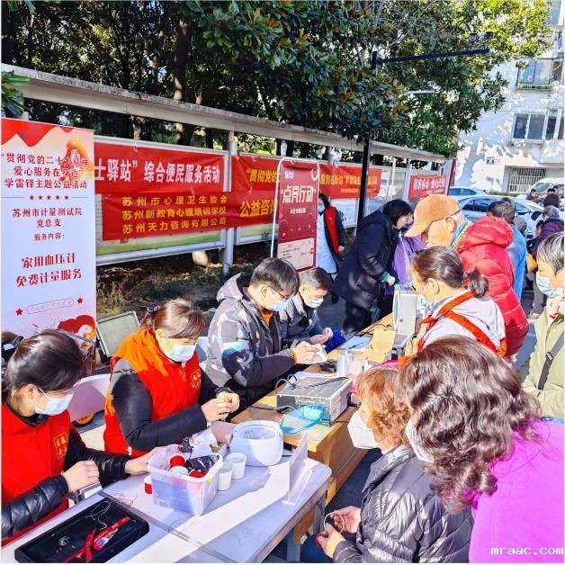 上午,计量院12名志愿者早早来到玉兰新村社区“设摊”, 现场为105户居民提供校准维修血压仪服务。质检院6名志愿者现场进行充电器产品安全知识宣讲并向群众发放折页手册500余份。龙凤金店公司10名员工志愿者,全天为群众提供首饰清洗、现场编制手串等服务,并为前来参与活动的居民送上了精美小礼物200份。下午,志愿服务队走进北园新村,福星护理院5名医护人员,为周边群众和300多位老人提供测血糖、量血压及健康咨询等服务。安利(苏州)公司志愿者走街串户开展“健康生活—营养早餐—安全饮食”健康餐饮知识普及宣讲。本次学雷锋公益活动服务惠及群众近千人,受到了基层社区和居民群众广泛点赞。