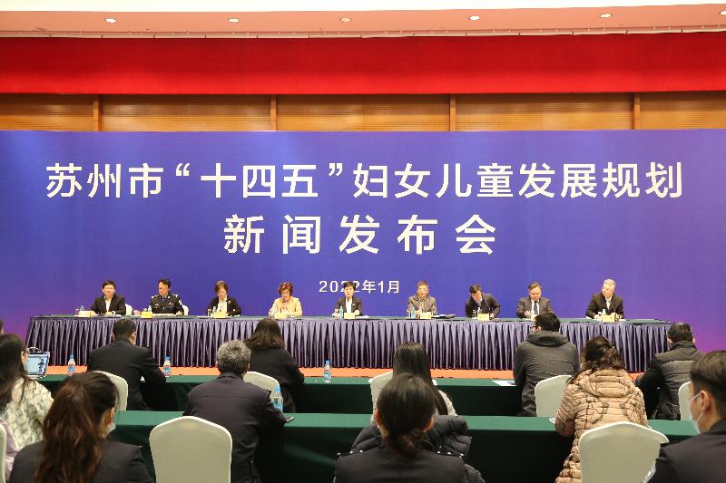1月11日上午,市政府妇儿工委举行新闻发布会,介绍近日颁布实施的《苏州市妇女发展规划(2021-2025年)》《苏州市儿童发展规划(2021-2025年)》有关情况。市政府妇儿工委副主任、市妇联主席王燕红代表市政府妇儿工委作新闻发布并回答了记者提问,市委军民融合办副主任徐建国,市民政局副局长芮静珈,市人社局副局长谭国明、市资规局副局长杨惠亚、市卫健委副主任沈洁、市公安局交管局局长朱建华,市教育局四级调研员汪涛出席发布会并回答记者提问,市政府新闻办副主任刘纯主持会议。