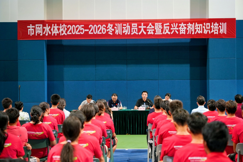 10月17日上午,为充分激发全体教职员工和运动员的冬训工作热情,进一步明确冬训目标、任务,落实落细冬训各项工作,市网水体校举办了2025-2026年度冬训动员会暨反兴奋剂知识培训。市体育局竞体处二级主任科员张达人、科级干部张艳,市网水体校全体职工、文化课老师、水上项目全体运动员以及网球项目运动员代表参加会议。