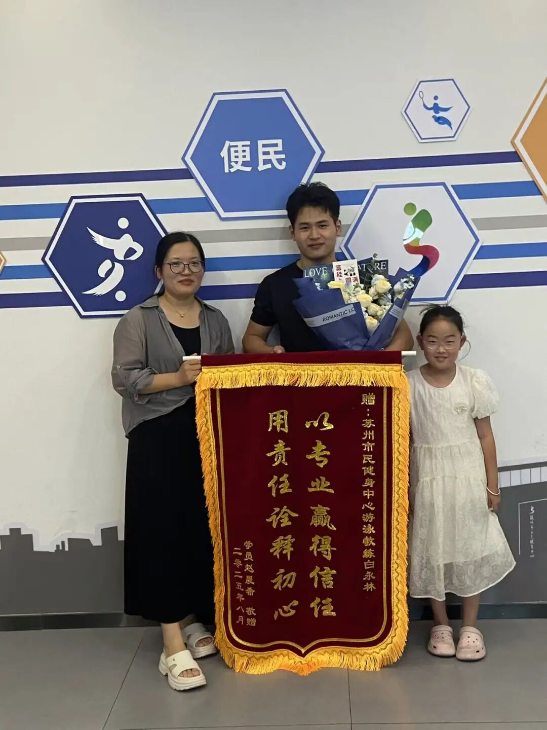 近日,苏州市市民健身中心游泳培训班再传喜讯,连续两位学员家长专程送来锦旗,以表达对“苏体健身”游泳培训专业教学的高度认可。