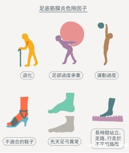 由于足底筋膜的延展性和弹性较差,任何施加在足底筋膜上的机械负荷都被认为是足底筋膜炎的危险因素,包括长期站立、肥胖、过度足内翻或扁平足、踝背伸受限、腓肠肌挛缩以及不合适的跑步姿势等。
