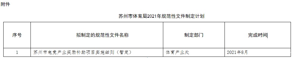 附件:苏州市体育局2021年规范性文件制定计划