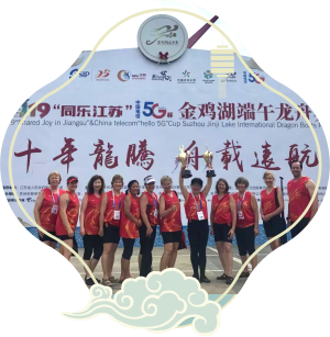 维多利亚市龙舟队首次参加苏州金鸡湖端午龙舟赛。